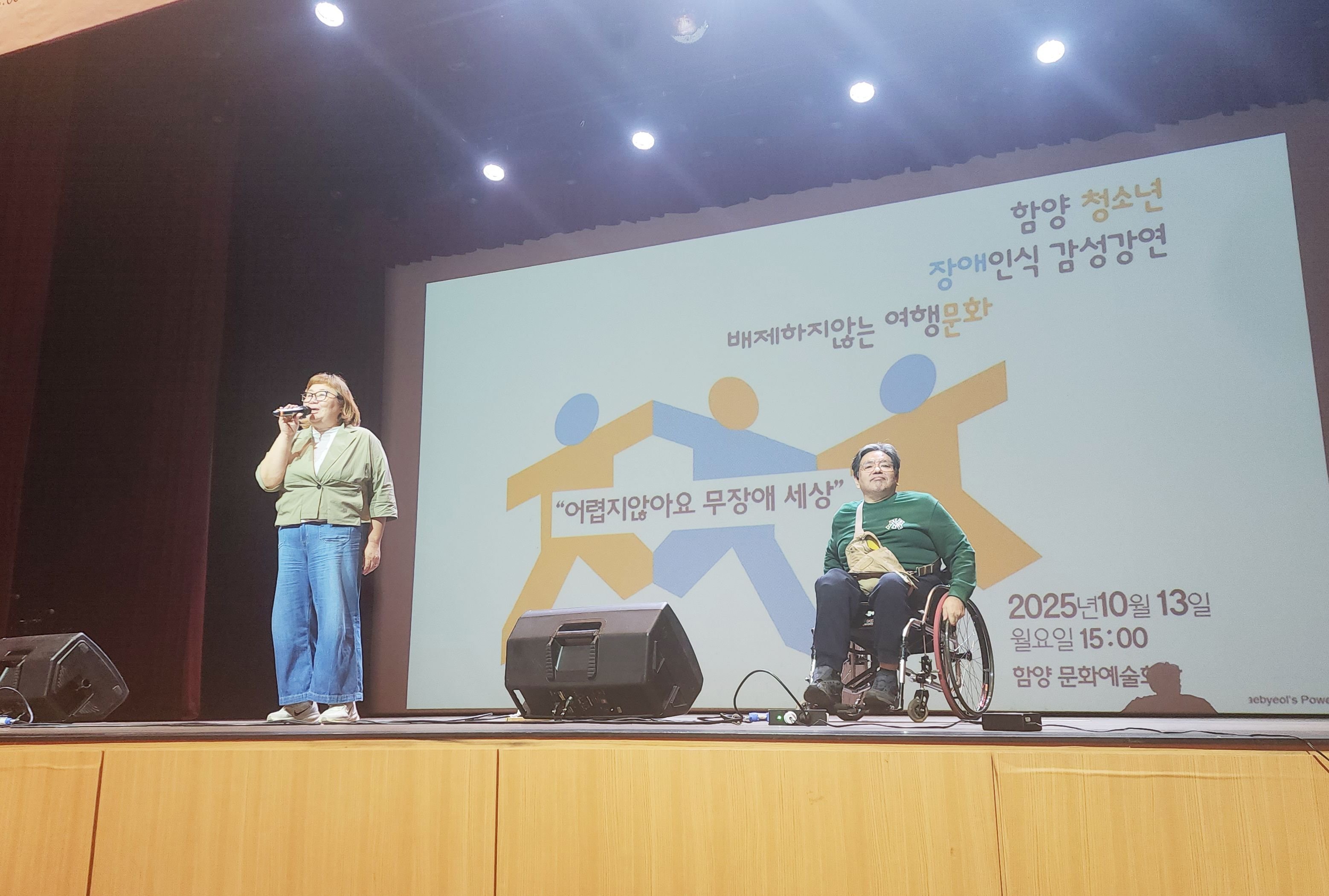 [한국Q뉴스] 함양군 사회복지협의회(회장 오연교)는 13일 함양예술문화회관 대공연장에서 ‘2025 함양 청소년 장애인식 감성강연’을 진행했다.