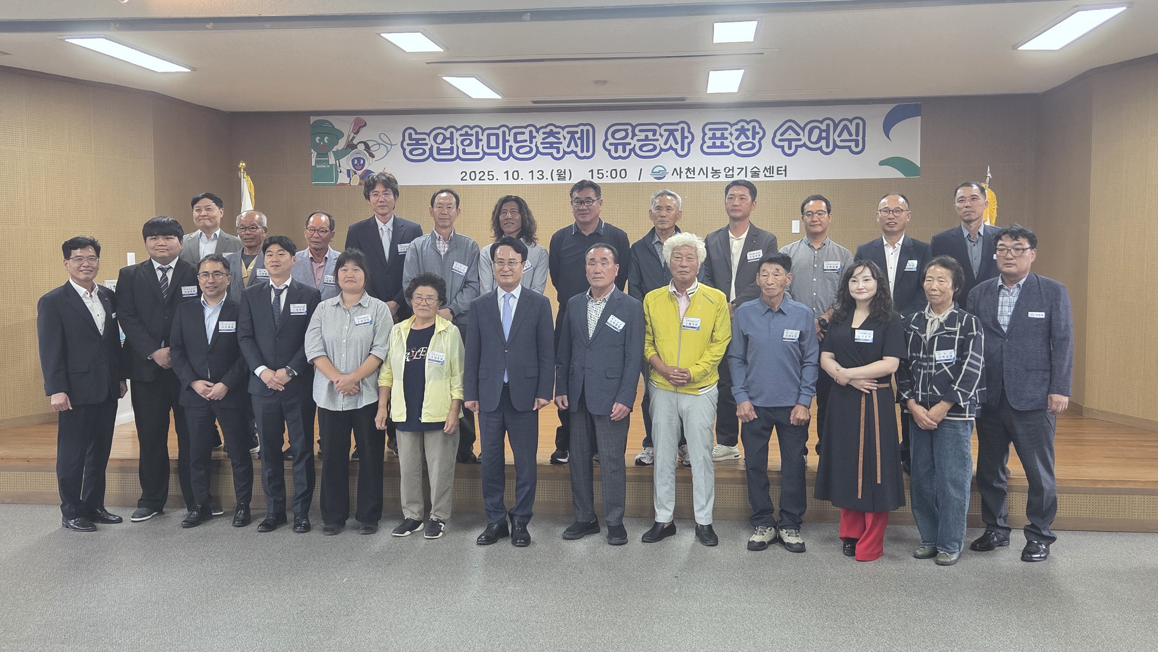 [한국Q뉴스] 사천시는 지난 13일 농업기술센터 3층 대회의실에서 제17회 사천시농업한마당축제를 기념해 그동안 농업발전과 농업경쟁력 향상에 기여한 유공자들에게 표창을 수여했다고 14일 밝혔다.