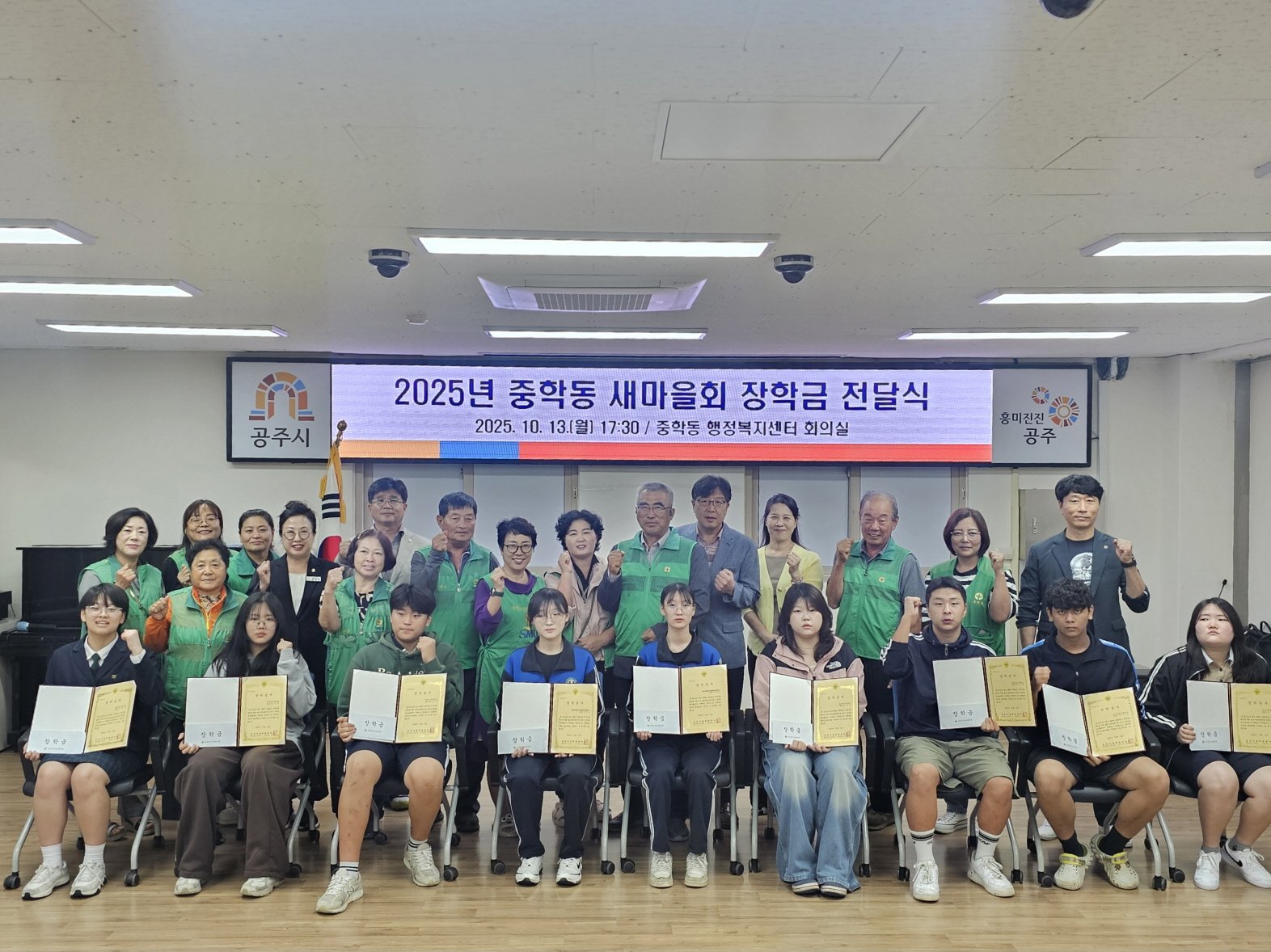 [한국Q뉴스] 공주시 중학동 새마을회(협의회장 정인묵, 부녀회장 오연욱)는 지난 13일 중학동 행정복지센터에서 모범 청소년 10명에게 장학금을 전달했다.