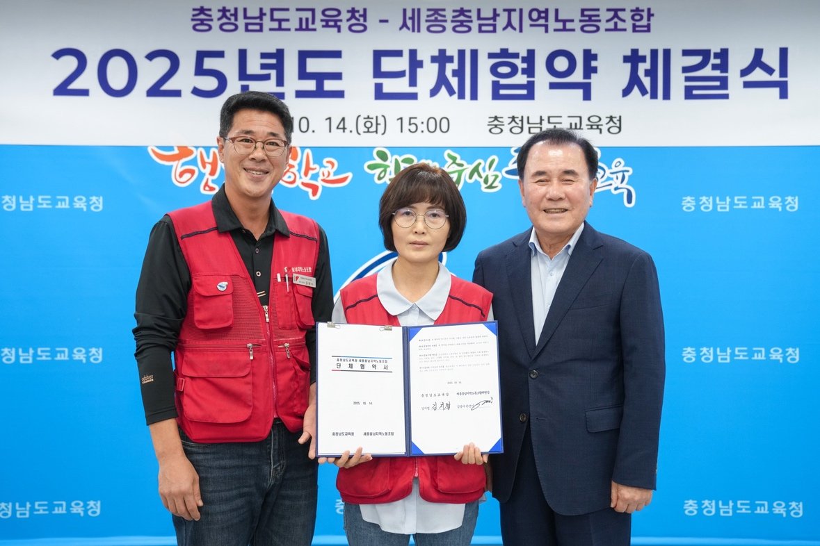 [한국Q뉴스] 충남교육청(교육감 김지철)은 10월 14일(화) 도교육청 회의실에서 세종충남지역노동조합과 단체협약을 체결했다.