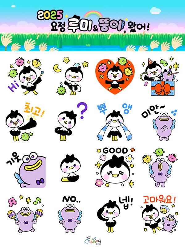 이번에 출시되는 ‘루미 뚱이’ 이모티콘은 국내 대표 콘텐츠 기업인 CJ ENM과 협력해 시 캐릭터 루미, 뚱이를 트렌드에 맞게 고도화를 거친 요정 버전을 활용했으며 순천에 기반한 인스타툰 작가 ‘달고나’ 와 협업해 제작한 움직이는 이모티콘 16종으로 구성됐다.