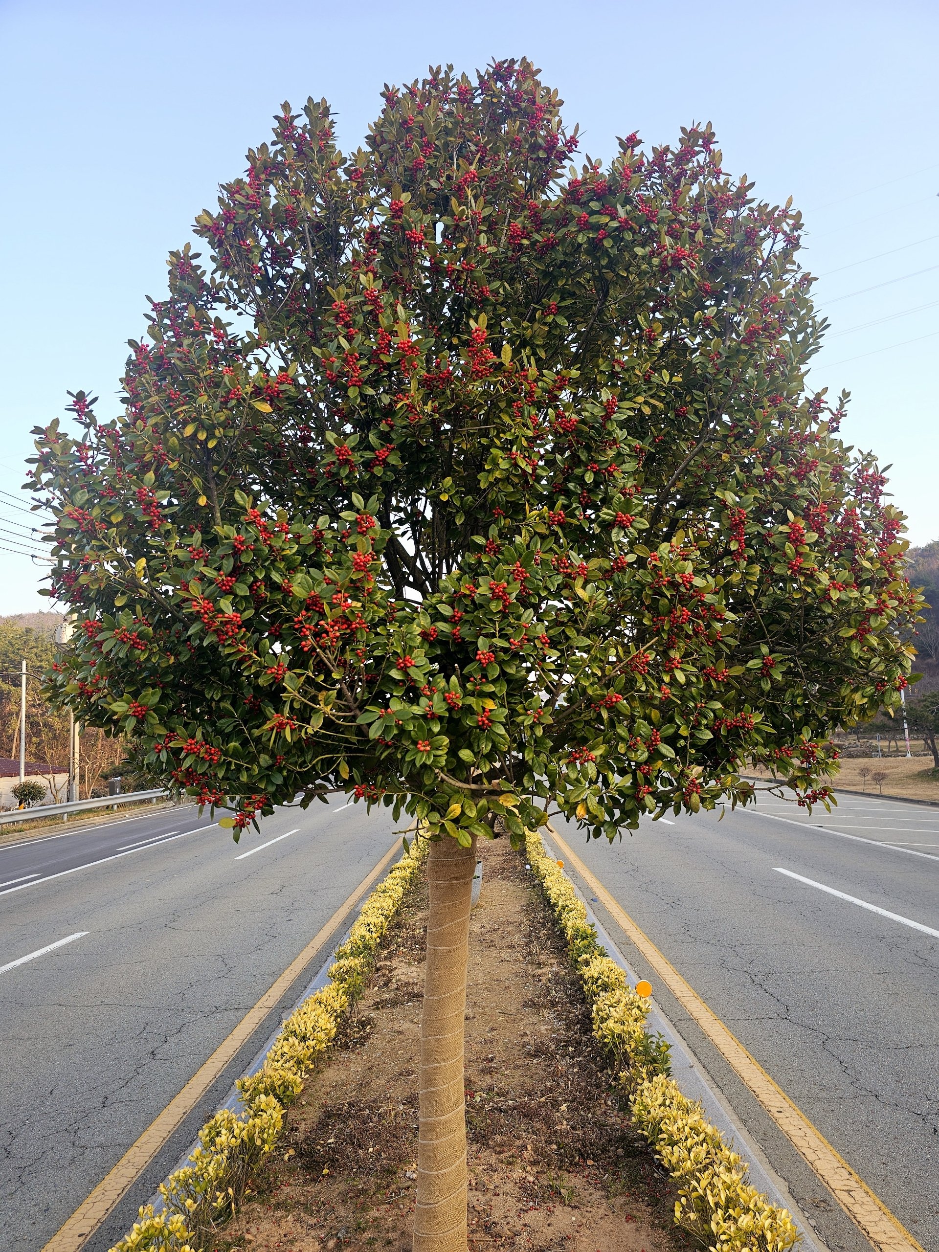 완도호랑가시나무는 둥근 잎끝에 가시가 있으며 가을철부터 열매가 익으면서 겨우내 붉은 열매를 맺고 있어 관상 가치가 높은 완도군의 향토 수종이다.