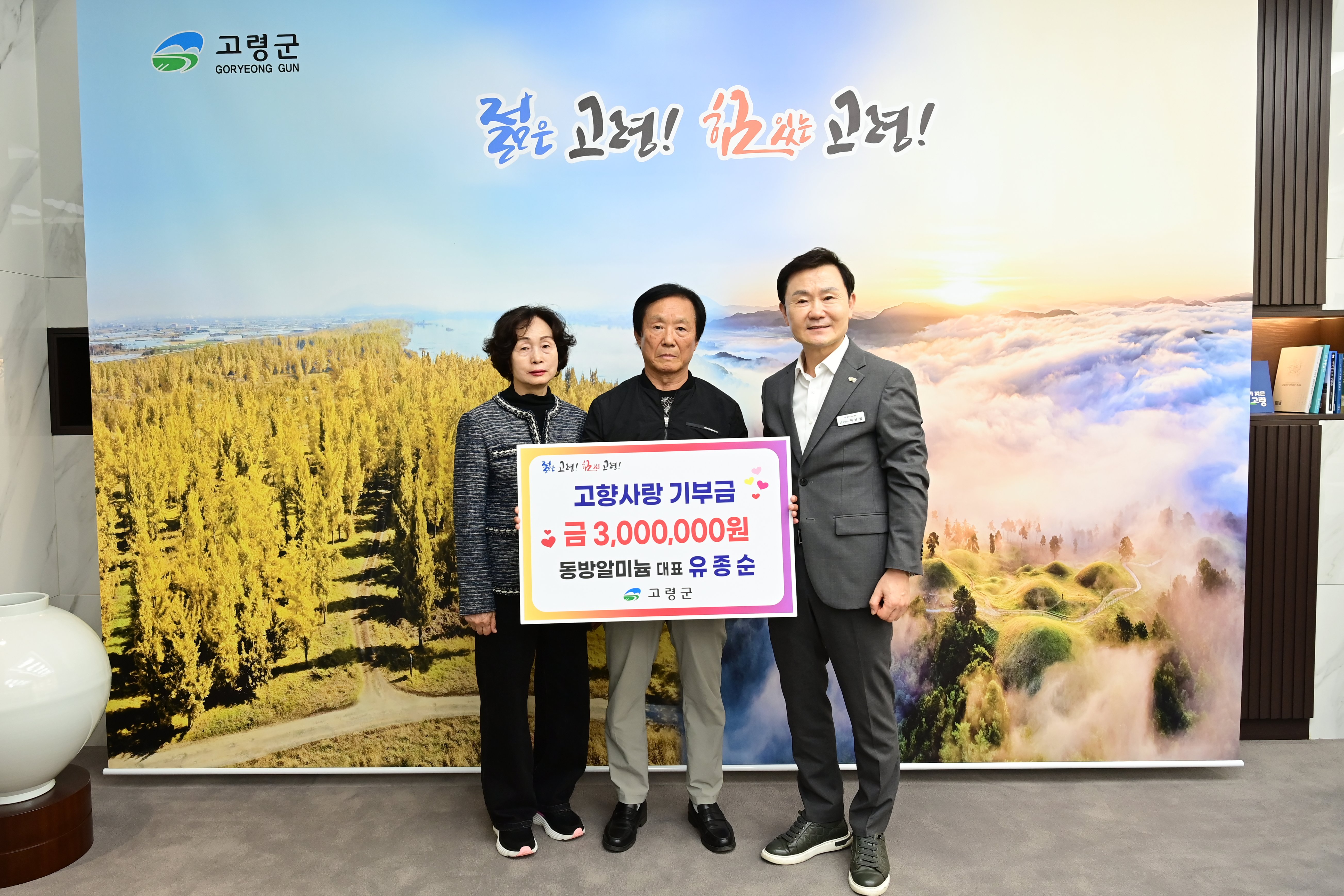 [한국Q뉴스] 고령군(군수 이남철)은 동방알미늄 유종순 대표가 지난 13일 고령군청을 방문해 2년 연속 고향사랑기부금 300만원을 기탁하며 고령군 지역발전에 힘을 보탰다고 전했다.
