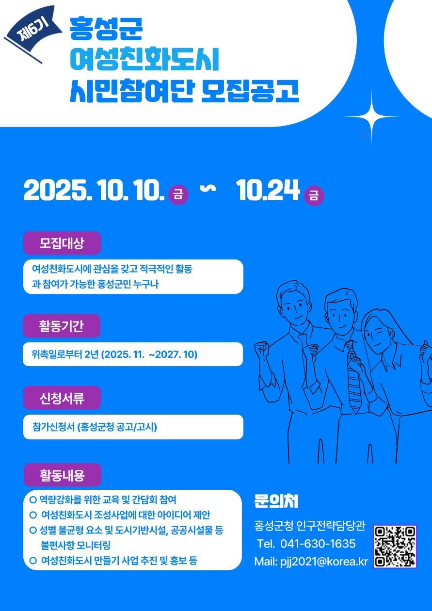 [한국Q뉴스] 홍성군이 ‘여성친화도시’ 조성을 위한 시민참여단 모집에 나섰다.