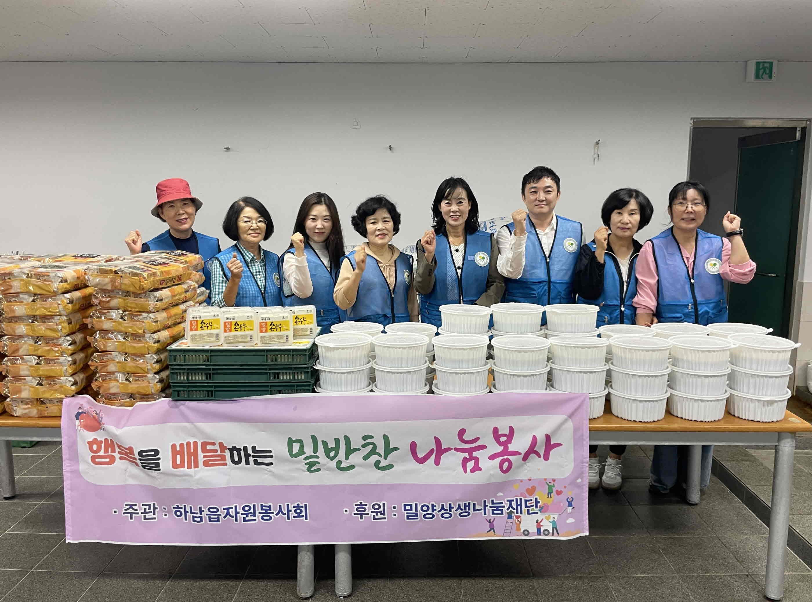 [한국Q뉴스] 밀양시 하남읍 자원봉사회(회장 박용옥)는 15일 하남읍민회관에서 홀몸 어르신과 장애인 가구 등 취약계층 50세대를 대상으로 ‘사랑의 밑반찬 나눔’ 봉사활동을 펼쳤다.