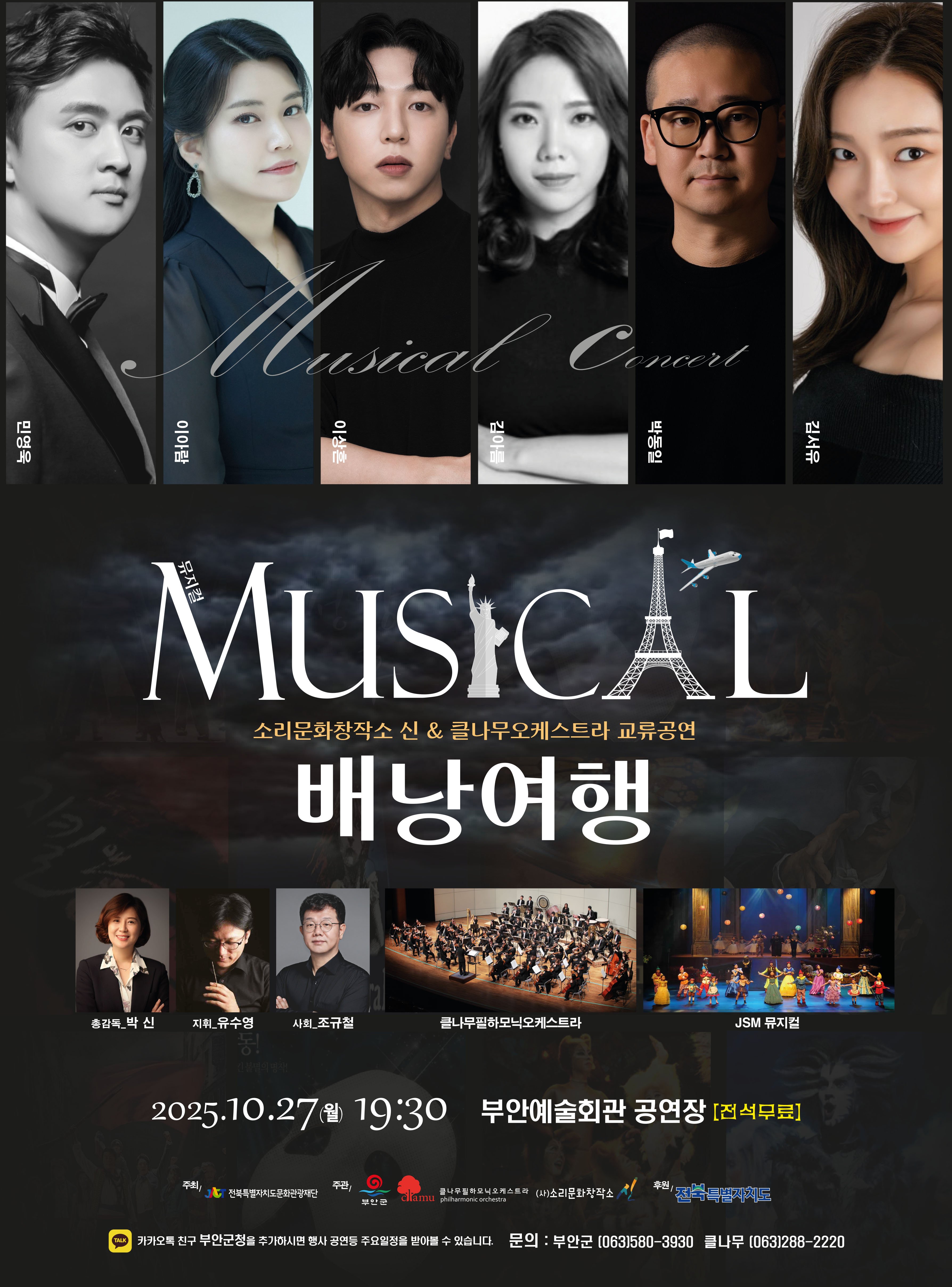 부안군 관계자는 “뮤지컬의 감동적인 노래와 오케스트라의 풍성한 선율이 함께 어우러져 관객들에게 마치 세계를 여행하는 듯한 경험을 선사할 것”이라며 “많은 분들이 함께 오셔서 예술이 주는 감동과 즐거움을 나누시기를 바란다”고 말했다.