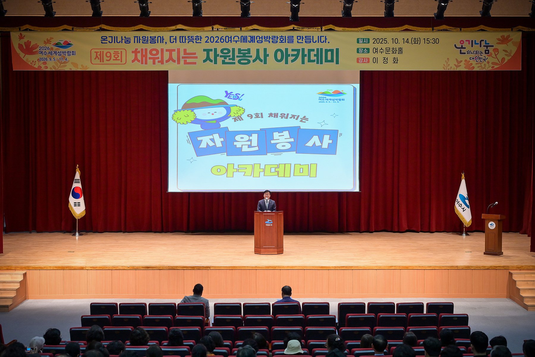 [한국Q뉴스] 여수시(시장 정기명)는 지난 14일 여수문화홀에서 자원봉사자 200여명이 참석한 가운데 제9회 ‘채워지는 자원봉사 아카데미’를 개최했다.