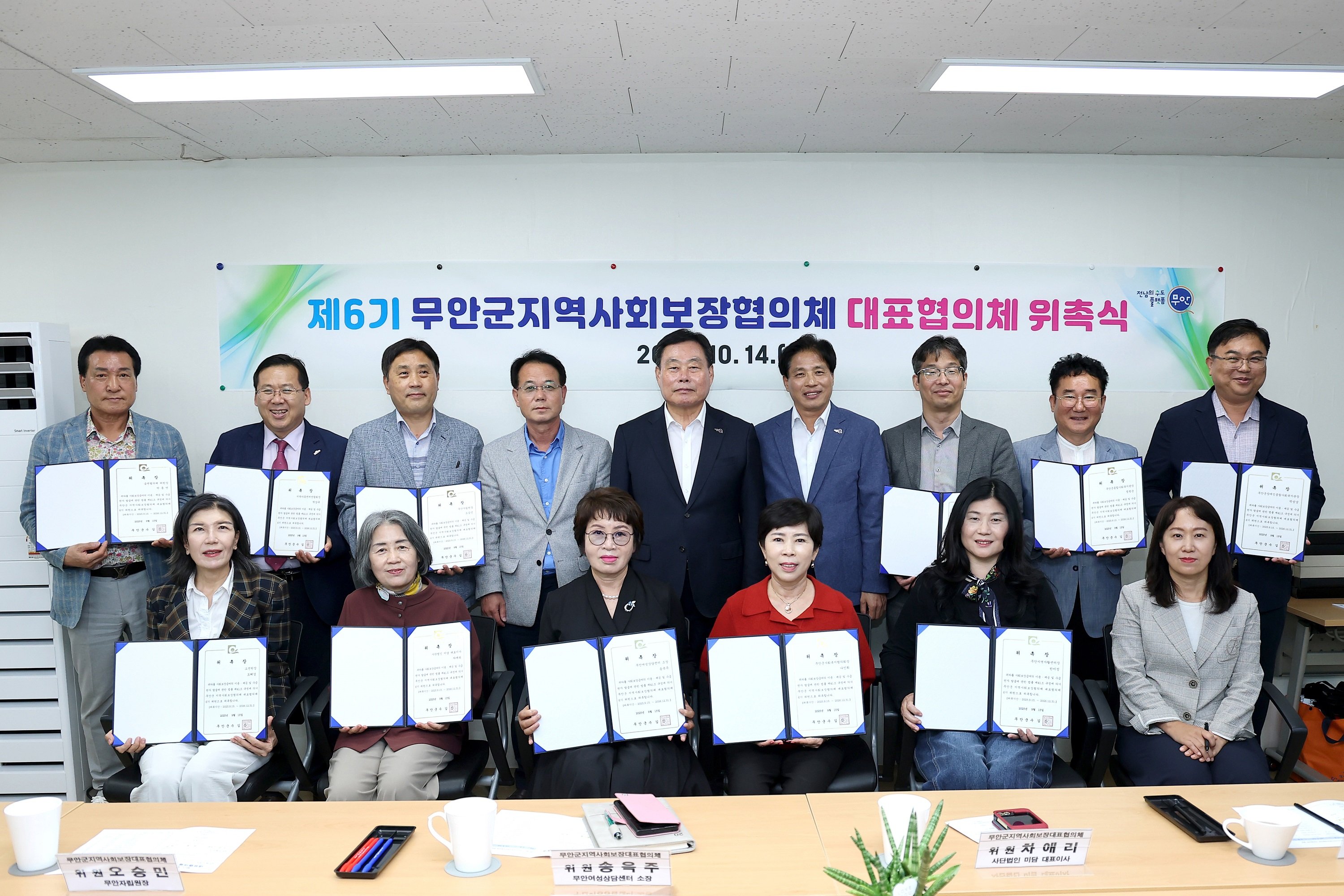 [한국Q뉴스] 전남 무안군(군수 김산)은 지난 14일 무안군 지역사회보장협의체 회의실에서 지역사회 민관협력체계를 강화하기 위한 제6기 대표협의체 위원 위촉식 및 회의를 개최했다.