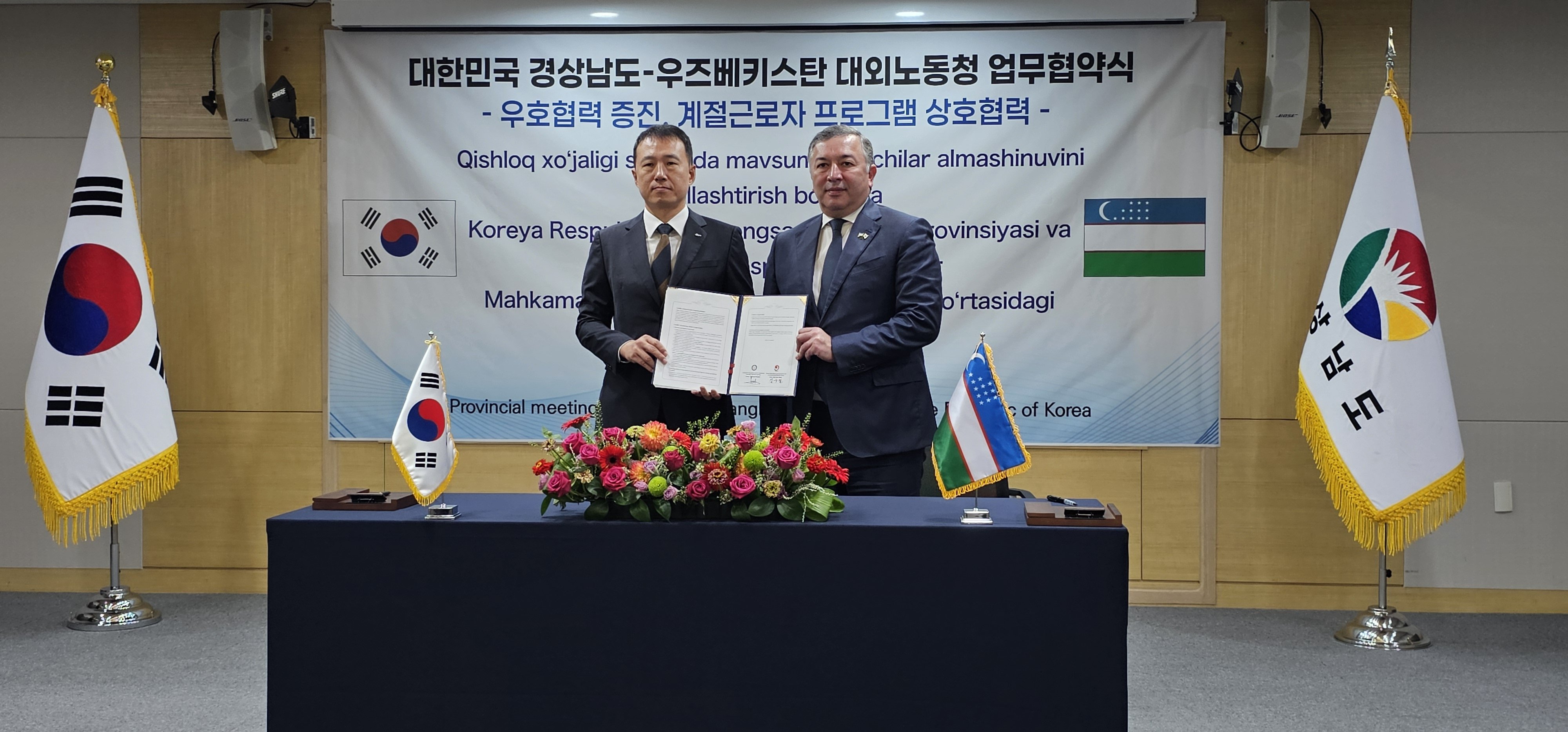 [한국Q뉴스] 합천군(군수 김윤철)은 10월14일 경남도청 도정회의실에서 우즈베키스탄 대외노동청과 외국인 계절근로자 도입을 위한 업무협약(MOU)을 체결했다.