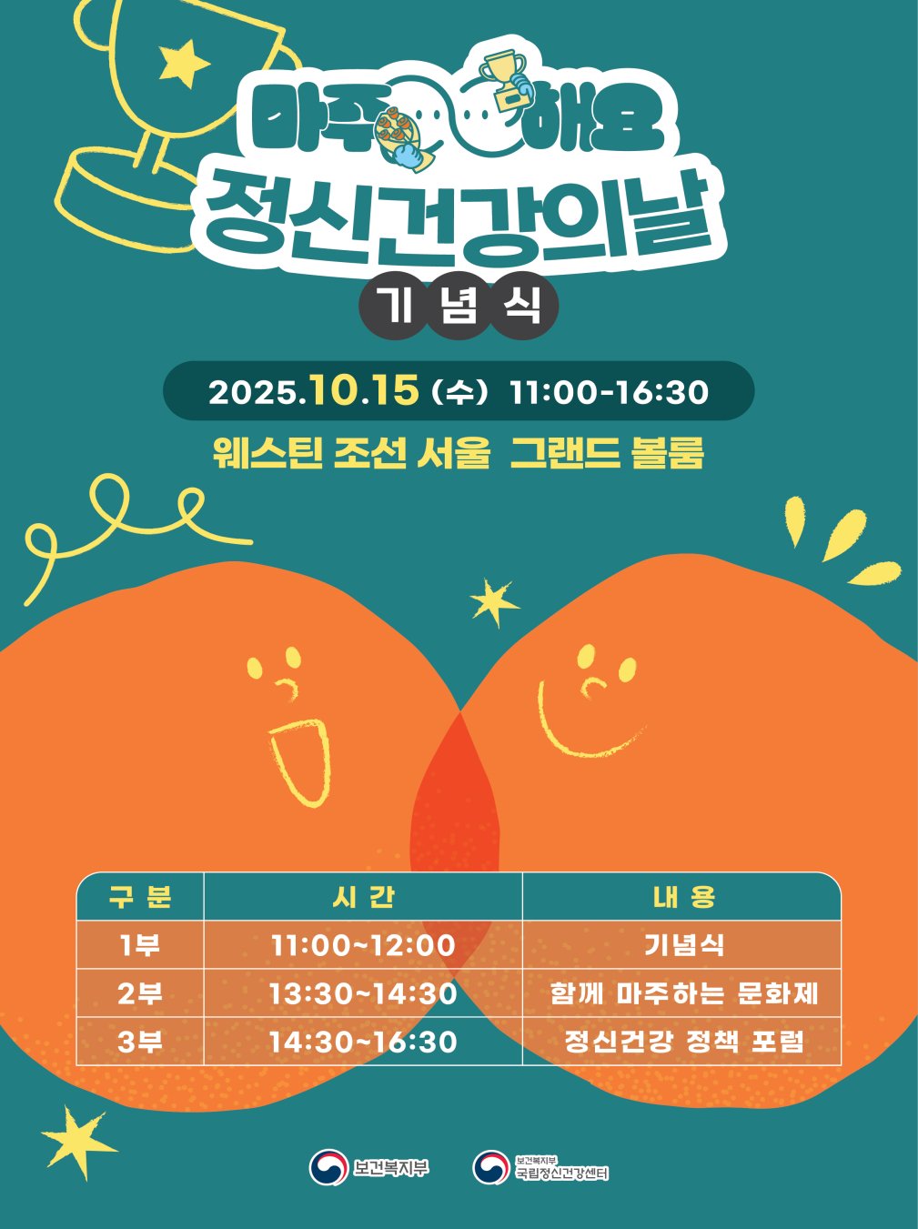 그리고 당사자와 가족이 참여하는 ‘함께 마주하는 문화제’ 와‘미래세대 정신건강’을 주제로 정신건강 관련 각계 전문가가 참여하는 대국민 정신건강 포럼도 개최했다.