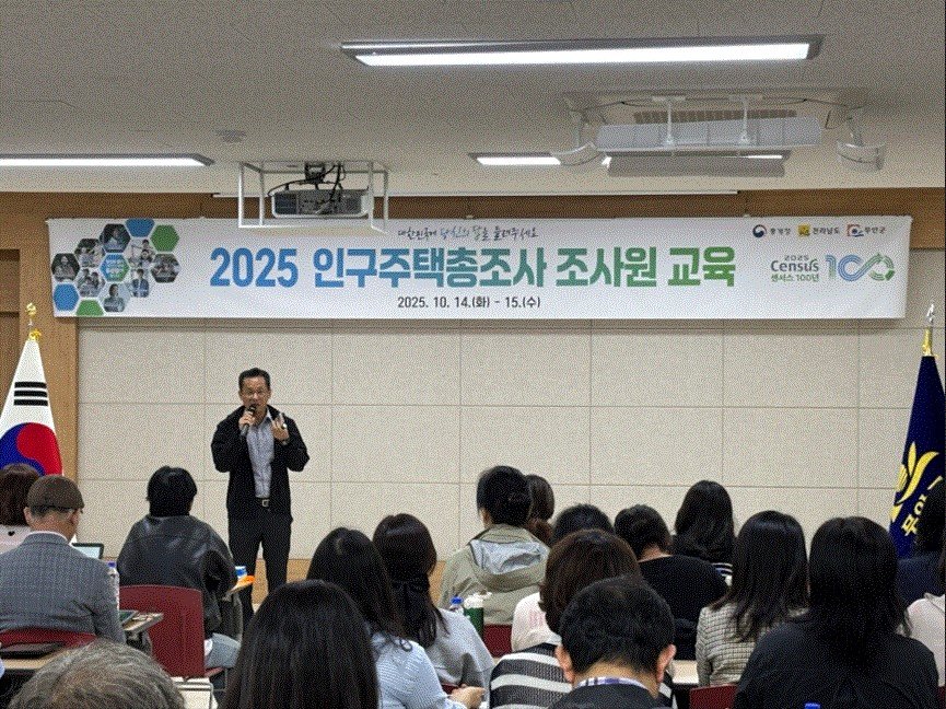 [한국Q뉴스] 전남 무안군(군수 김산)은 ‘2025 인구주택총조사’의 원활한 추진을 위해 10월 14일부터 15일 양일간, 현장조사를 수행할 조사원 및 예비 조사원을 대상으로 교육을 진행했다.