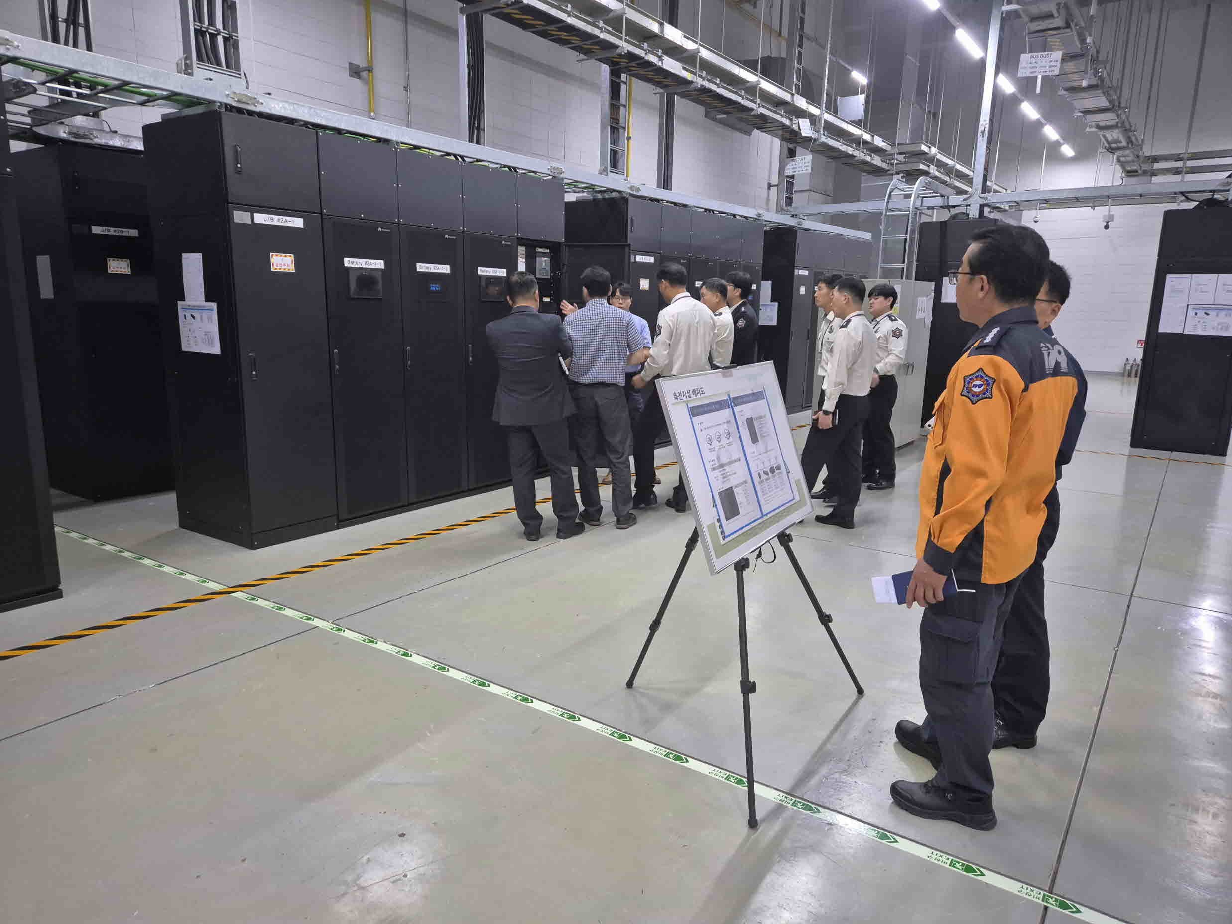 현장점검에서는 전기설비, UPS(무정전 전원장치), 냉각장치 등 화재 발생 가능성이 높은 주요 설비에 대한 전반적인 안전관리 상태를 확인하고 관계자들에게 초기 화재 대응요령과 비상대피 체계 점검의 중요성을 강조했다.