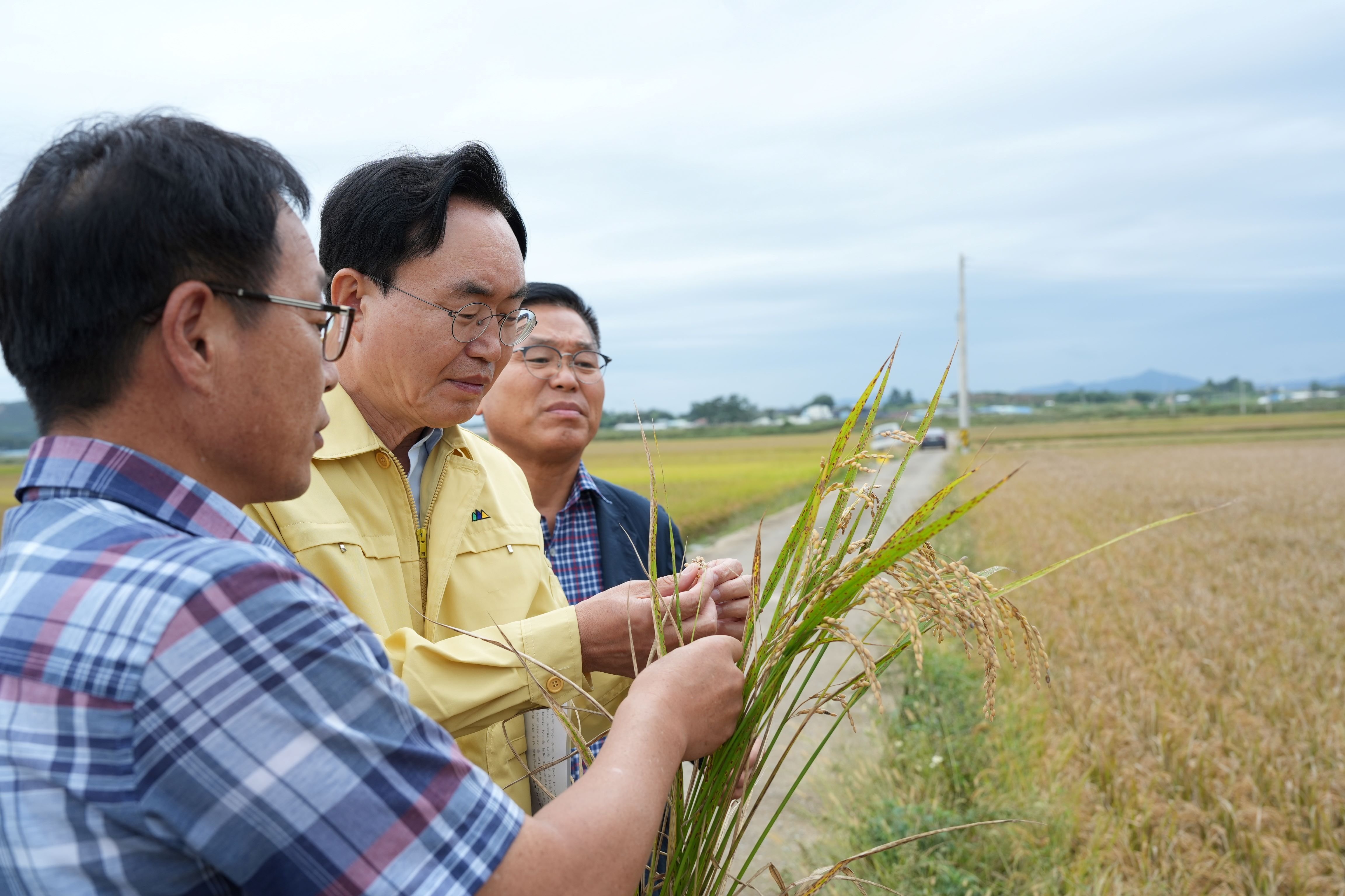 윤병태 시장은 10월 15일 반남면 덕산리 일대 피해 논을 방문해 현황을 점검하고 지역 농협 관계자들과 함께 병해 확산 원인을 살폈다.
