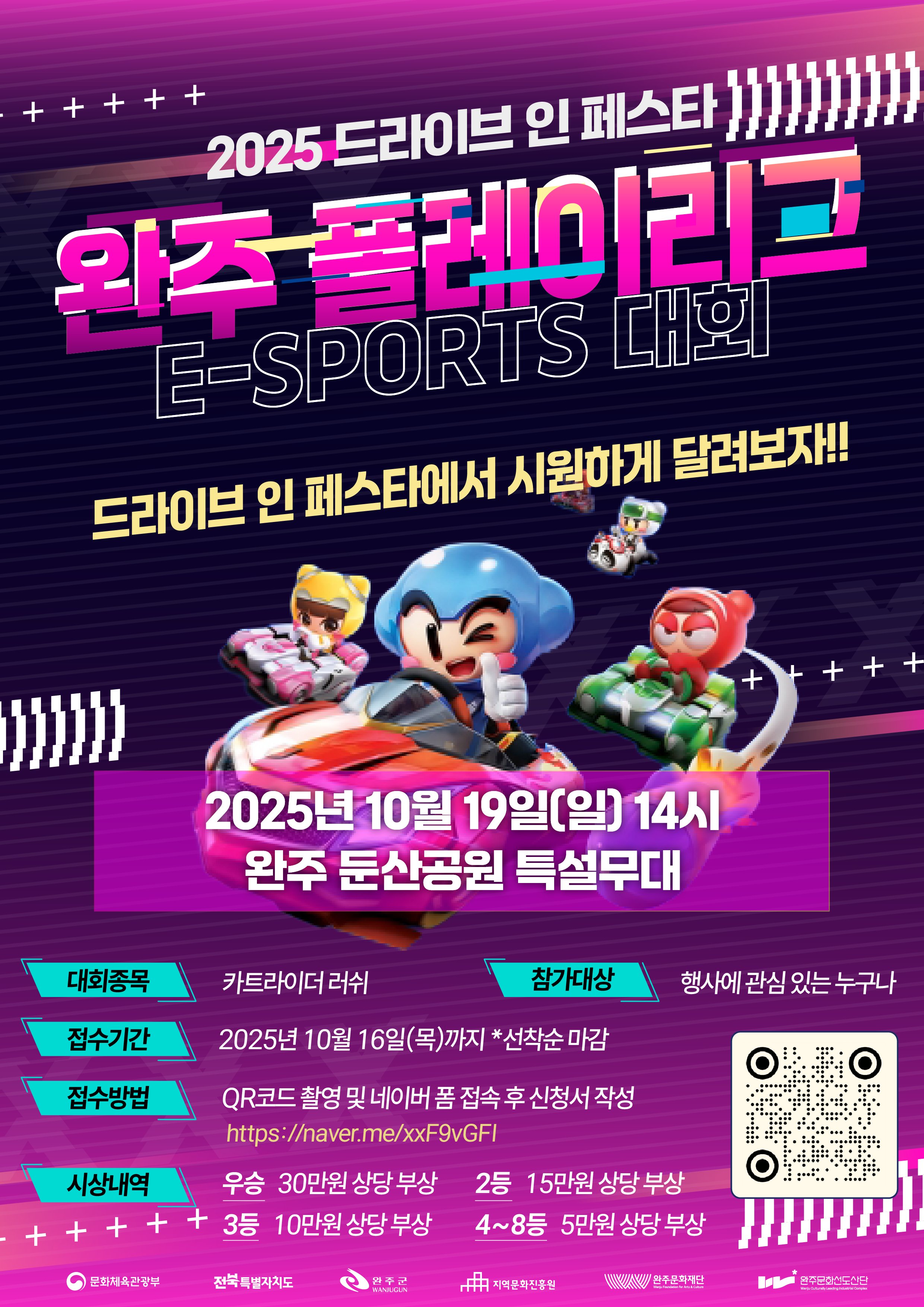 [한국Q뉴스] 완주문화재단(이사장 유희태)은 10월 17일(금)부터 19일(일)까지 3일간 완주 둔산공원 일대에서 지역 상생형 문화축제 ‘2025 드라이브 인 페스타’를 개최한다.