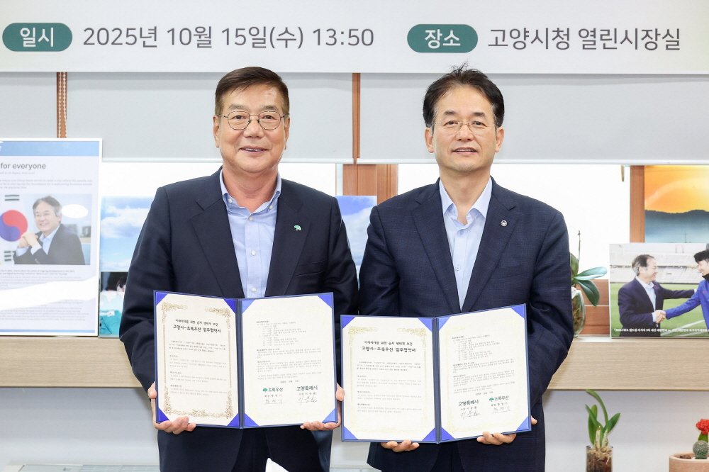 [한국Q뉴스] 고양특례시(시장 이동환)는 지난 15일 시청 열린시장실에서 초록우산(회장 황영기)과 미래세대를 위한 습지 생태계 보전 및 사회공헌 협력에 관한 업무협약을 체결했다고 밝혔다.