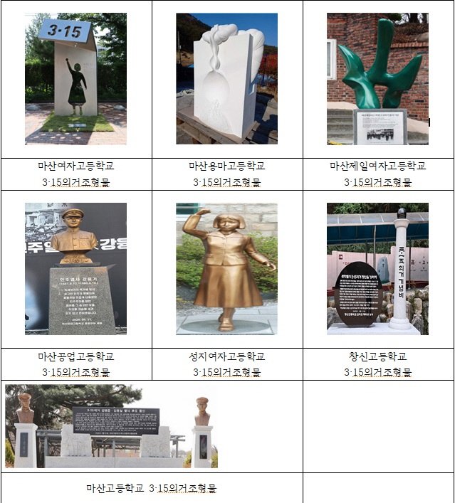 이 사업은 3·15의거 당시 민주화 운동에 참여했던 마산 지역 7개 고등학교를 대상으로 2년여에 걸쳐 추진한 결과로 각 학교에 민주화 운동을 상징하는 조형물이 새롭게 세워졌다.