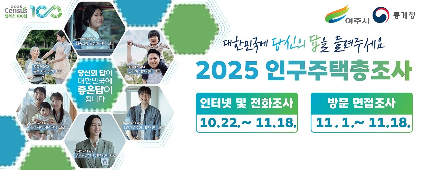 [한국Q뉴스] 여주시는 오는 10월 22일부터 11월 18일까지 ‘2025 인구주택총조사’를 실시한다고 밝혔다.