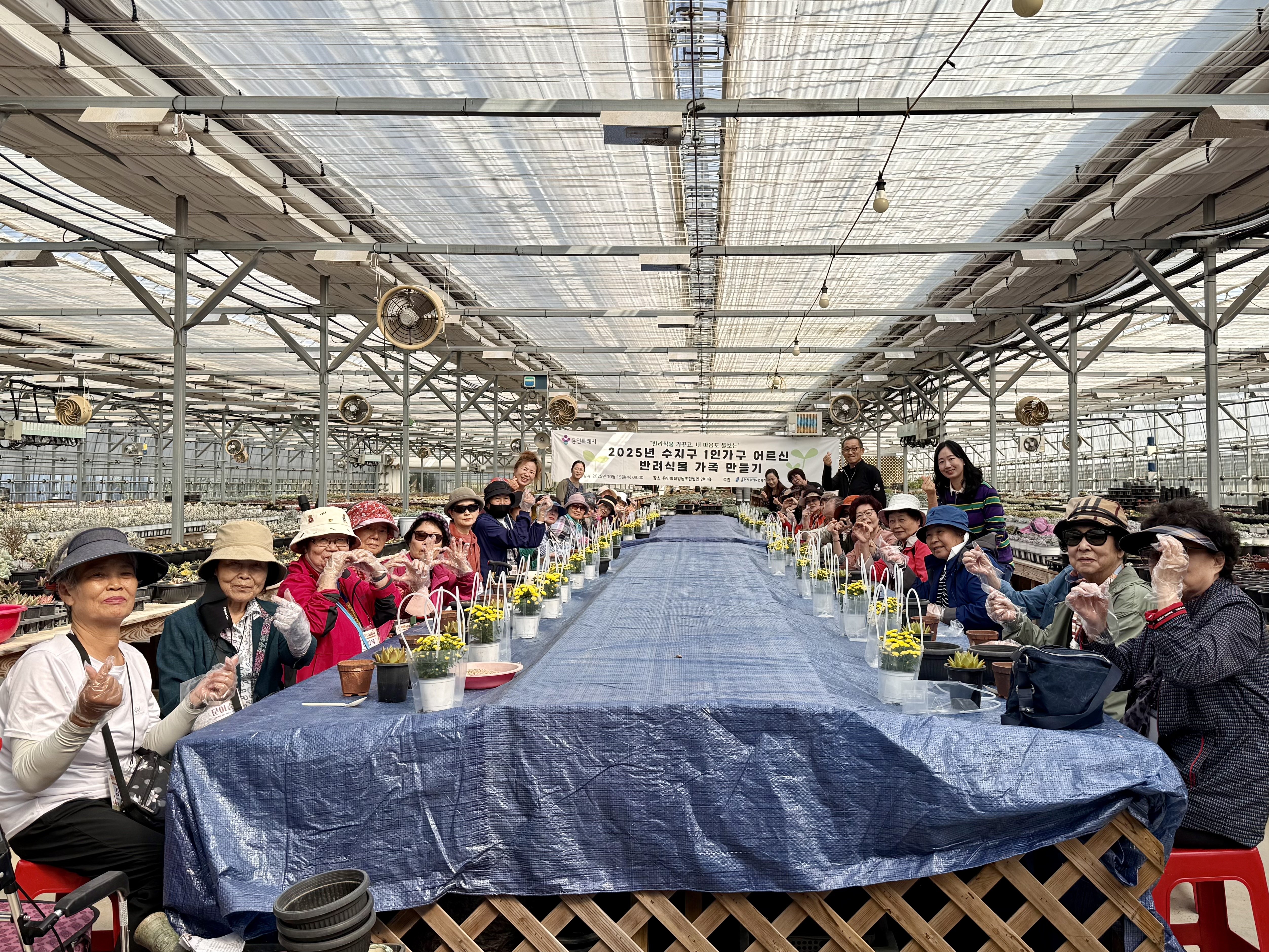[한국Q뉴스] 용인특례시(시장 이상일) 수지구는 10월 경로의 달을 맞아 15일 65세 이상 홀로 어르신 40여명을 대상으로 이동읍 화훼단지에서 반려식물 식재 체험과 가을 나들이 행사를 진행했다고 16일 밝혔다.