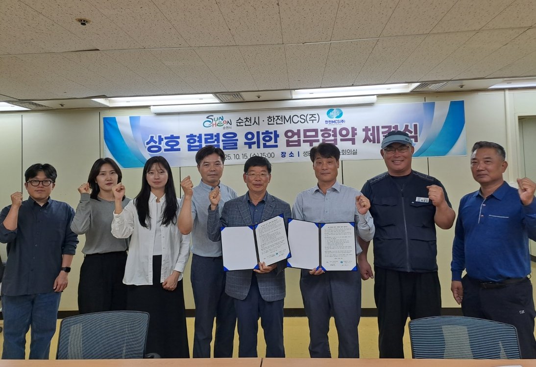 [한국Q뉴스] 순천시(시장 노관규)는 지난 15일 생태환경센터 3층 소회의실에서 쾌적한 공원 환경 조성을 위해 한전MCS(주) 순천지점과 도시공원 유지·관리 업무협약을 체결했다고 밝혔다.