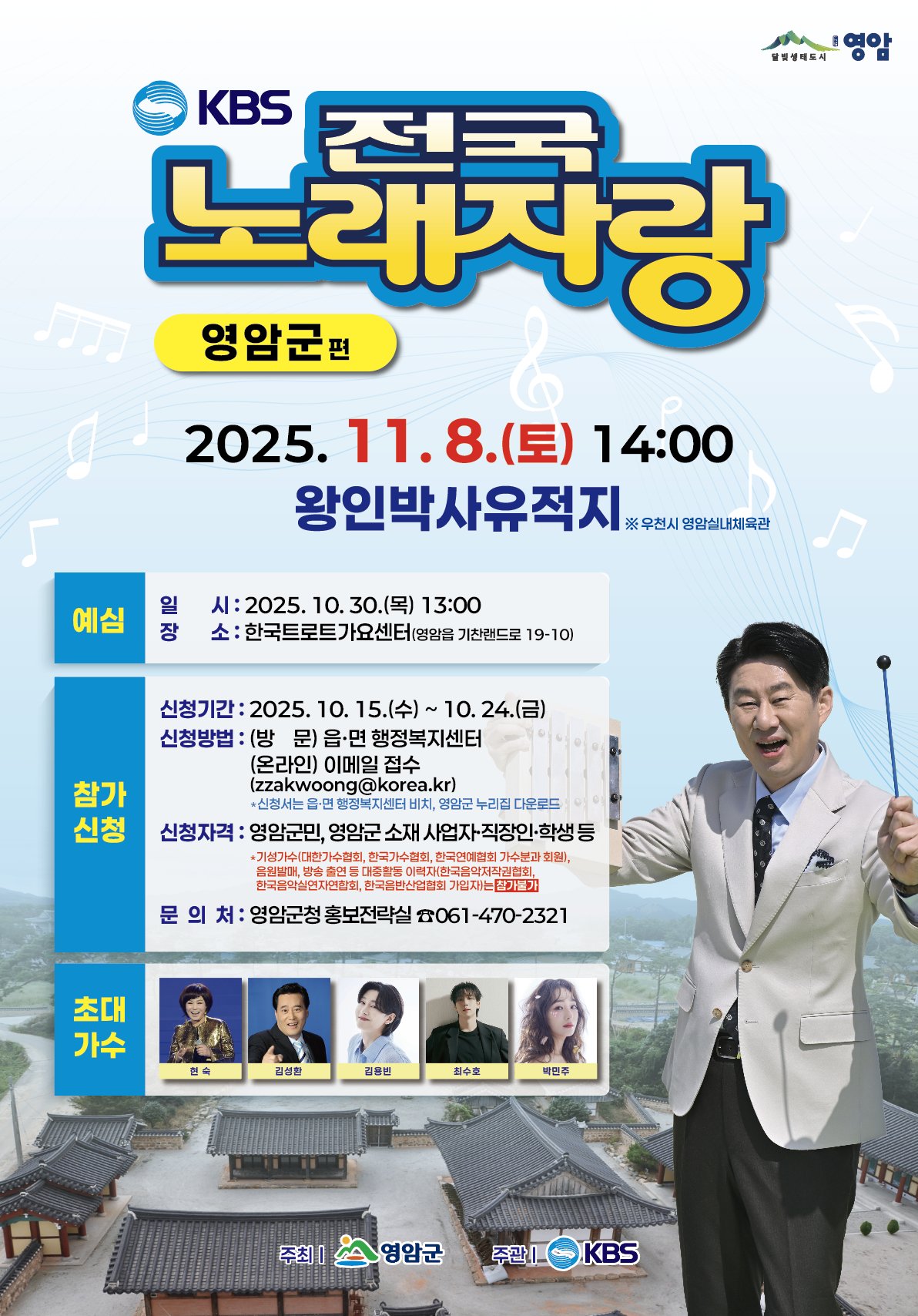 [한국Q뉴스] 영암군(군수 우승희)이 KBS전국노래자랑 예심 참가자를 15~24일 선착순 300명 모집한다.
