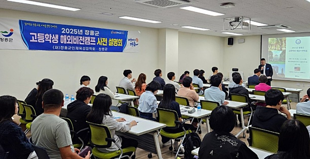 [한국Q뉴스] 장흥군은 15일 (재)장흥군인재육성장학회 주관으로 장흥고등학교에서 ‘2025년 장흥군 고등학생 해외비전캠프 사전설명회’를 개최했다.