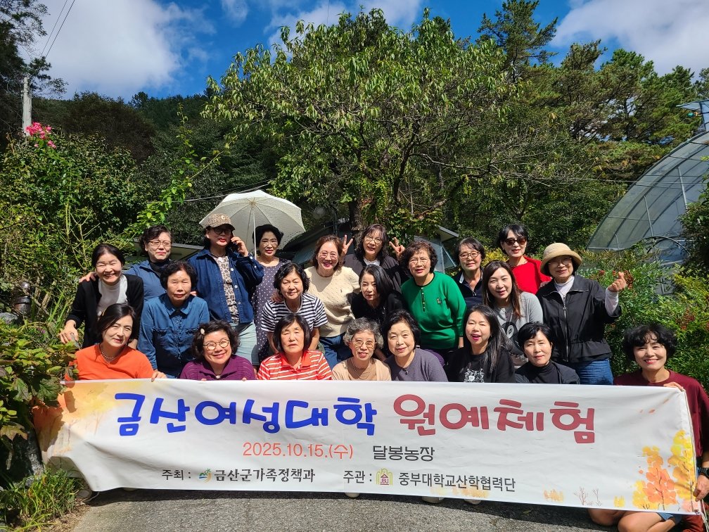 [한국Q뉴스] 금산여성대학은 지난 15일 남이면 달봉농장에서 원예 체험 프로그램을 진행했다.