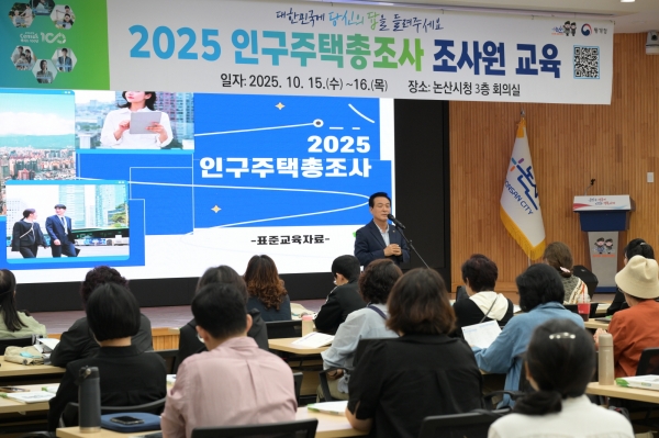 논산시는 10월 15일과 16일 이틀간 논산시청 3층 회의실에서 ‘2025 인구주택총조사 조사원 교육’을 실시했다.