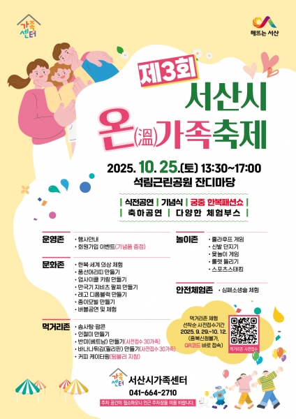 [한국Q뉴스] 충남 서산시는 오는 10월 25일 석림근린공원 잔디마당 일원에서 제3회 온가족 축제를 개최한다고 밝혔다.