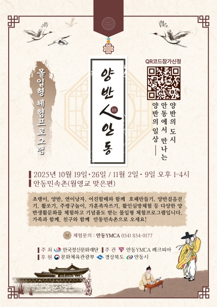 안동시 관계자는 “누구나 와서 즐길 수 있는 체험 프로그램을 통해 더 많은 시민이 문화도시 안동과 안동인의 가치를 체감하길 기대한다”고 전했다.