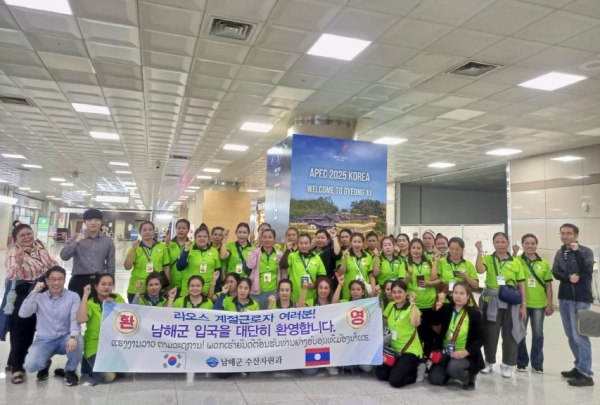 [한국Q뉴스] 남해군은 법무부 주관 ‘2025년 하반기 외국인 계절근로자 프로그램’ 으로 배정된 ‘라오스 외국인 여성 계절근로자’ 34명이 지난 16일 김해공항을 통해 입국했다고 밝혔다.