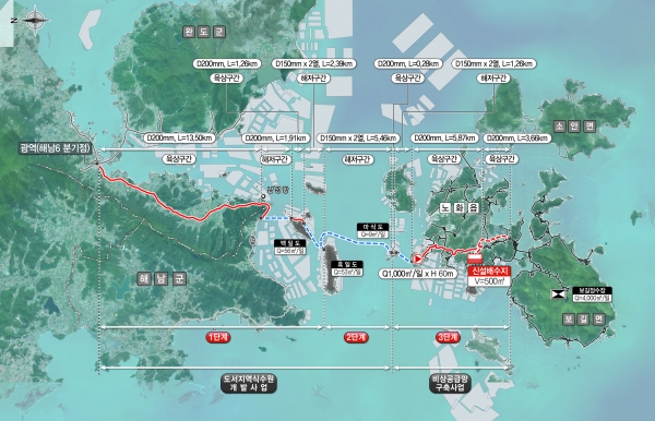 군 관계자는 “해저 관로를 통해 광역 상수도를 공급함으로써 가뭄으로 인한 물 부족 등 도서 지역 용수 공급의 근본적인 문제가 해결될 것으로 전망된다”며 “사업이 조기에 착공되고 차질 없이 추진될 수 있도록 최선을 다하겠다”고 말했다.