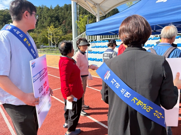 이날 민생회복 소비쿠폰 태스크포스 팀원들은 북면 생활체육공원 일대에서 군민들에게 소비쿠폰 사용 기한과 사용처를 안내했다.