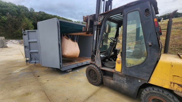 [한국Q뉴스] 여주시는 재활용선별장에서 반복적으로 발생한 폐건전지 화재에 대응하기 위해 기존 암롤박스를 개조한 이동식 폐배터리 전용 보관소를 구축했다.