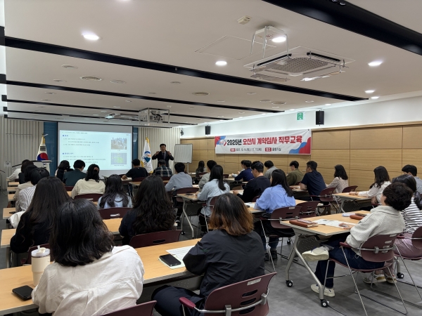[한국Q뉴스] 오산시는 지난 16일 오산시청 물향기실에서 본청 및 산하기관 발주 담당자 45명을 대상으로 ‘2025년 계약심사 직무교육’을 실시했다고 밝혔다.