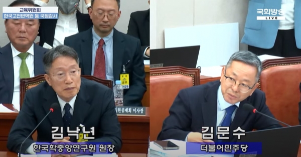[한국Q뉴스] 국회 교육위원회 국정감사에서 더불어민주당 김문수 의원이 한국학중앙연구원 김낙년 원장을 상대로 “이승만은 여순사건 학살자”고 직격했다.