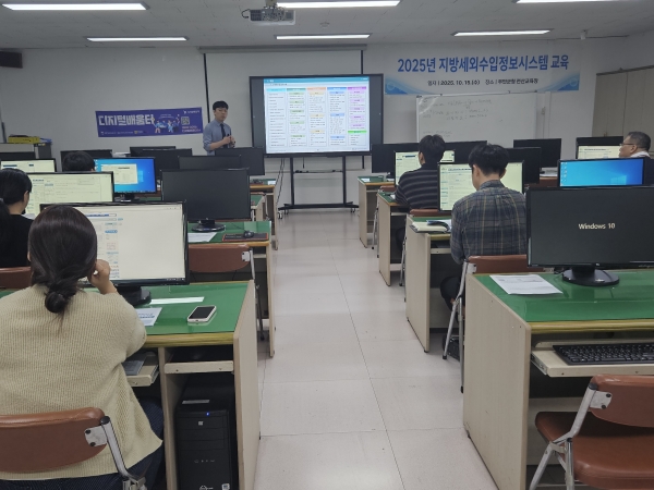 이번 교육은 세외수입의 체계적인 관리와 효율적인 업무 처리를 통해 징수 실효성을 높이고 공정한 세정을 실현하기 위해 마련된 것으로 한국지역정보개발원 전문 강사의 진행으로 부과·징수결의·과오납 처리·독촉장 발송 등 실무에서 자주 발생하는 다양한 사례 중심 강의가 이뤄졌다.