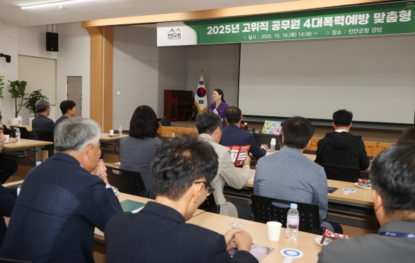 [한국Q뉴스] 진안군은 지난 16일 군청 강당에서 고위직 공무원을 대상으로 4대 폭력 예방교육을 실시했다.