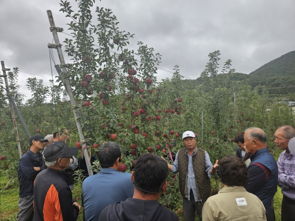 참석자들은 청송 지역의 선도 농장 2개소를 방문해 다축 재배 초기 과원 조성과 토양 관리, 수세 조절, 병해충 방제 기술 등을 집중적으로 학습했다.