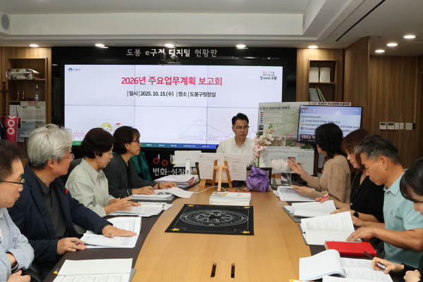 [한국Q뉴스] 서울 도봉구가 지난 10월 15일 도봉구청 구청장실에서 ‘2026년도 주요업무계획 보고회’를 개최했다.