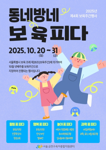 [한국Q뉴스] 금천구는 20일부터 31일까지 금천구 곳곳에서 보육주간행사 ‘동네방네 보육피다’를 개최한다고 밝혔다.
