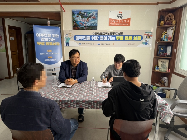 [한국Q뉴스] 수원특례시는 19일 수원이주민센터에서 외국인 노동자와 이주민을 대상으로 ‘찾아가는 무료 법률상담’을 운영했다.