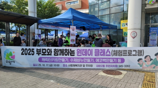 [한국Q뉴스] 의왕시 내손2동 주민자치회는 10월 17일 부모와 함께하는 원데이클래스 행사를 주민센터와 사랑채 복지관 앞마당에서 개최했다.