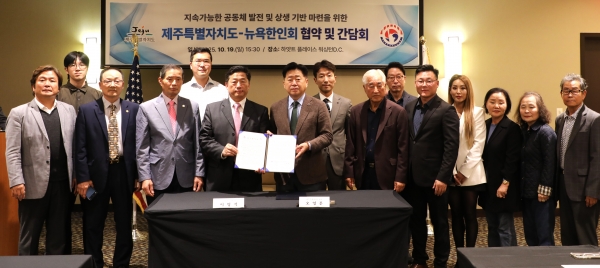 [한국Q뉴스] 제주특별자치도가 미국 동부 50만 한인을 대표하는 뉴욕한인회와 손잡고 경제·관광·문화·교육 분야 글로벌 협력 네트워크를 본격 가동한다.