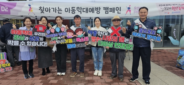 이날 캠페인은 오산시 아동위원협의회 위원들이 주축이 되어 진행됐으며 축제장을 찾은 청소년과 시민들에게 아동학대의 주요 유형, 신고 방법, 일상 속 예방 수칙 등을 안내하는 홍보활동을 펼쳤다.