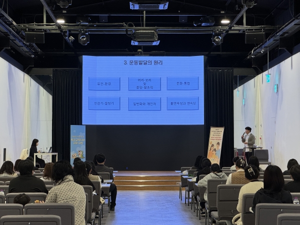 이번 연수는 영유아의 연령별 발달 특성과 이에 맞는 놀이전략 및 환경 조성에 대한 이론적 이해를 중심으로 시각·감각 자극과 대·소근육 운동 등 성장 발달을 촉진하는 구체적 방법을 안내했다.