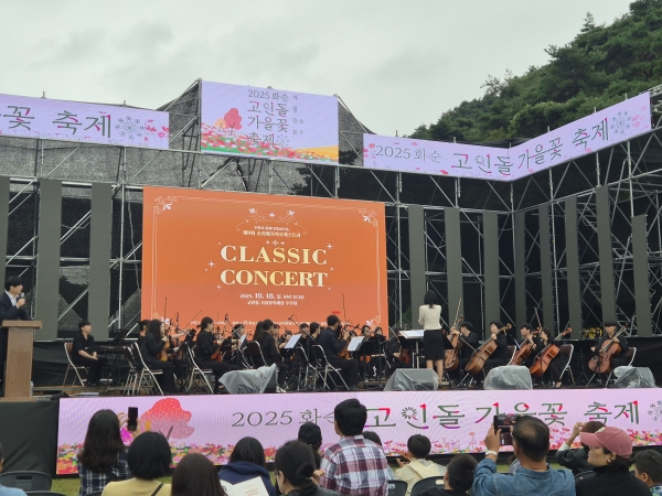 이번 오케스트라 음악회는 '2025 화순고인돌가을꽃축제를 맞아 축제장 주무대에서 펼쳐져 축제장을 찾은 관광객과 주민들에게 아름다운 선율을 선사했다.