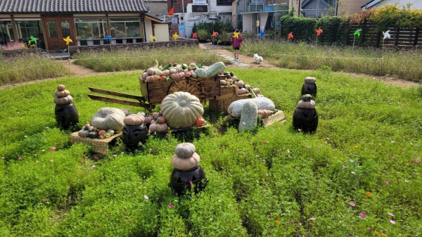 호박을 활용한 다양한 조형물과 장식으로 가을 분위기를 만들었다.