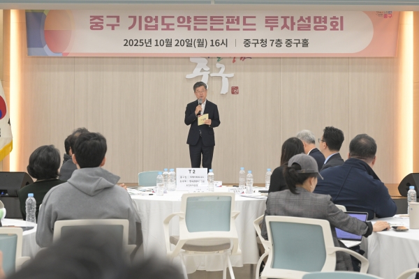 [한국Q뉴스] 서울 중구가 지난 20일 중구청에서 ‘중구 기업도약든든펀드 투자설명회’를 열고 성장 잠재력이 높은 중소·벤처기업을 대상으로 투자 유치와 성장 지원 계획을 밝혔다.