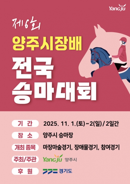 [한국Q뉴스] 양주시가 오는 11월 1일부터 2일 양주시 승마장에서 ‘2025 제6회 양주시장배 전국 승마대회’를 개최한다.