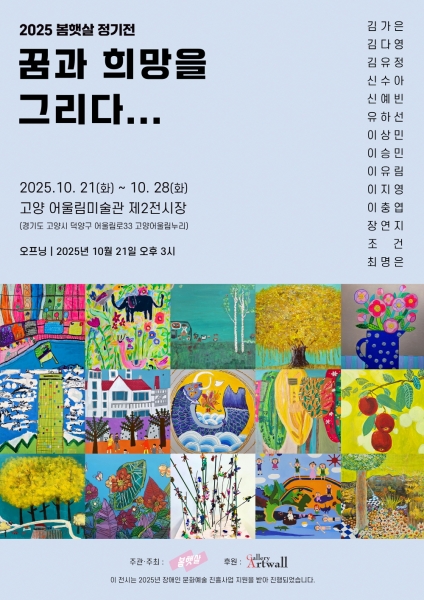 이번 전시는 장애 예술인의 창작활동을 지원하고 시민의 문화 향유 기회를 확대하기 위해 마련된 자리로 ‘봄햇살’ 소속 예술인들이 직접 참여한 다채로운 회화작품이 전시된다.